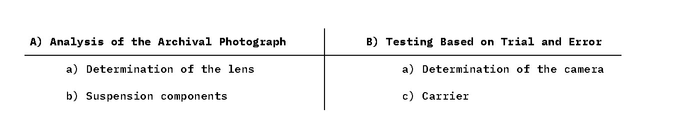 According to the African mythologies collected by John S. Mbiti [7] and Arthur Conan Doyle’s personal experiences with modern spiritualism, which involved journeying in Australia and New Zealand [8], the only successful method to redeem the souls of the extras sealed in the archival photograph would be to re-enact the original event. The reconstruction of the SS Goth steamer and the application of the same photomechanical appliances and methods would be mandatory for a successful outcome of this venture. To determine the originally applied techniques, we propose a procedure based on trial and error. The following steps, gathered in the table below, are mandatory for goal achievement: a) the finding of the appropriate camera and lens, b) the determination of the components and mix ratio of the original emulsion, and c) the carrier of the emulsion, either glass, metal, or paper. These findings will be brought to light by A) further analysis of the original photograph and B) by the simple decision-making based on trial and error mentioned above.