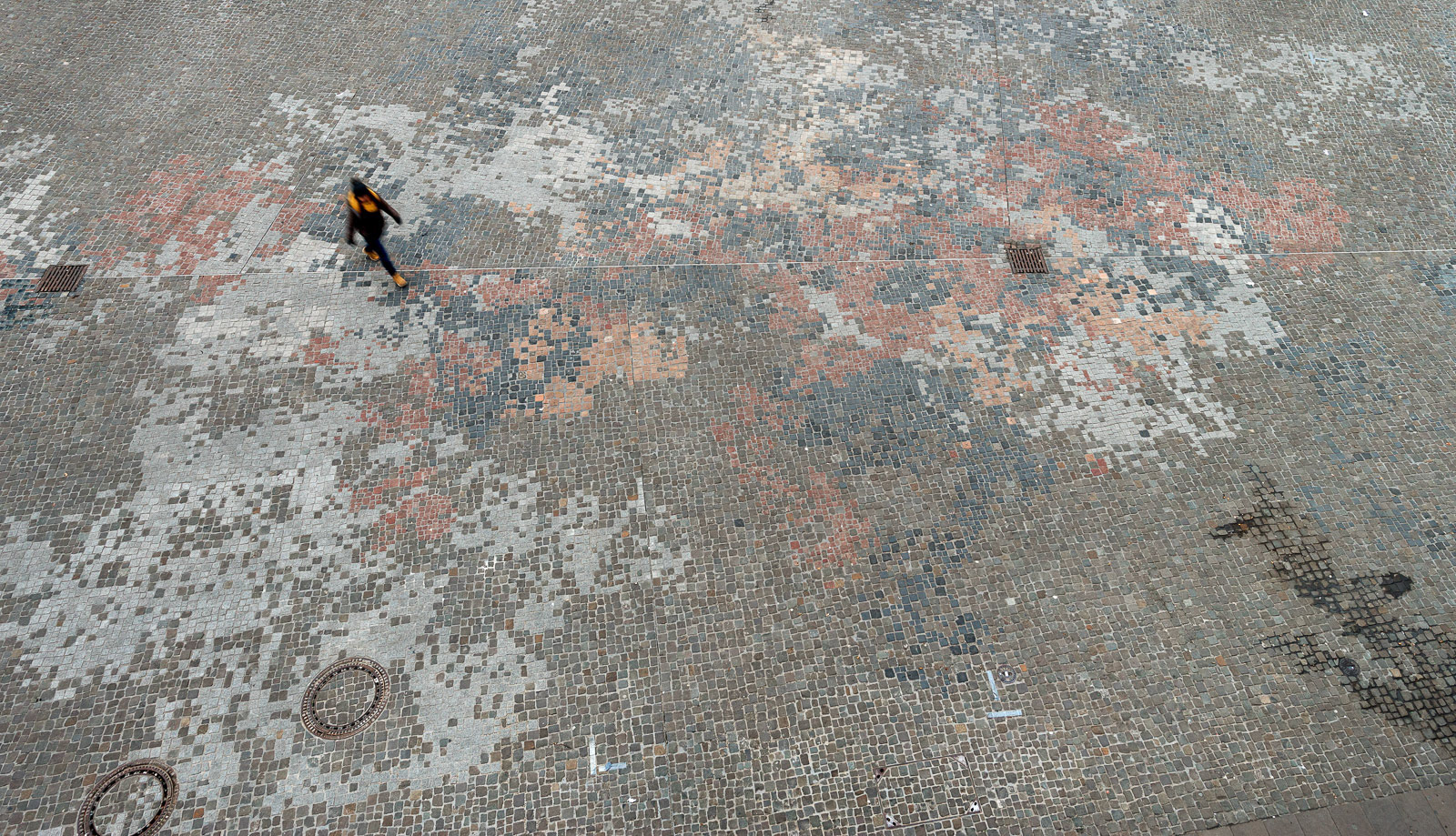 The link between the personal memories of participants and the abstract shape of the mosaic-like pavement was a computer program coded by German media-artist Ralf Baecker. The code of the program allowed a meaningful translation of people’s answers and drawings into digits, values and colour codes. This method allowed us to use their memories ad feeling about the place as input for a computer simulation that rendered a dynamic pattern based on the cohesion of different stones. This way the participant’s could influence whether their virtual agent in the program made wider or shorter steps, and whether the result would be a mixture or different clusters of stones. The participants have built their own square without being aware of what they actually do. In the end, the whole process became a metaphor for the aggregated effect of a community life shaped by the inhabitants. The inhabitants shape their environment, but they can neither control the process nor its outcome.