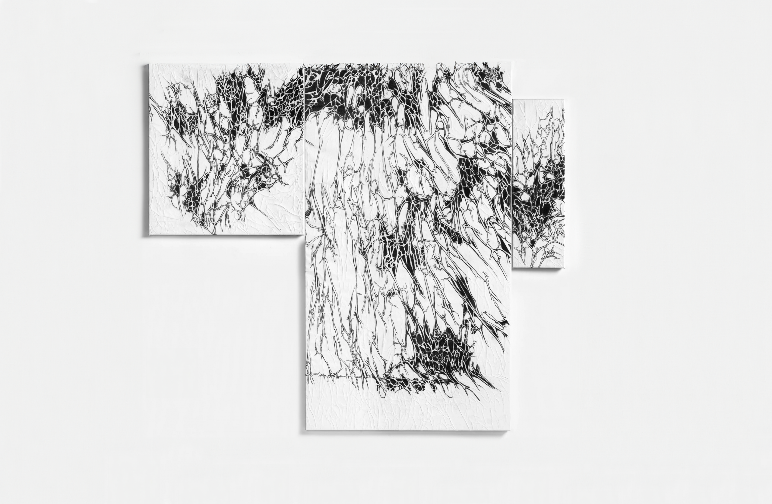 Kaabi-Linke performs this temporally determining process as a reduction that highlights the physical conditions that usually carry drawings, paintings, forms, and contents. Following the paper’s wrinkles, the artist’s last and only decision is the acceptance to end the process when the moment seems to be right.